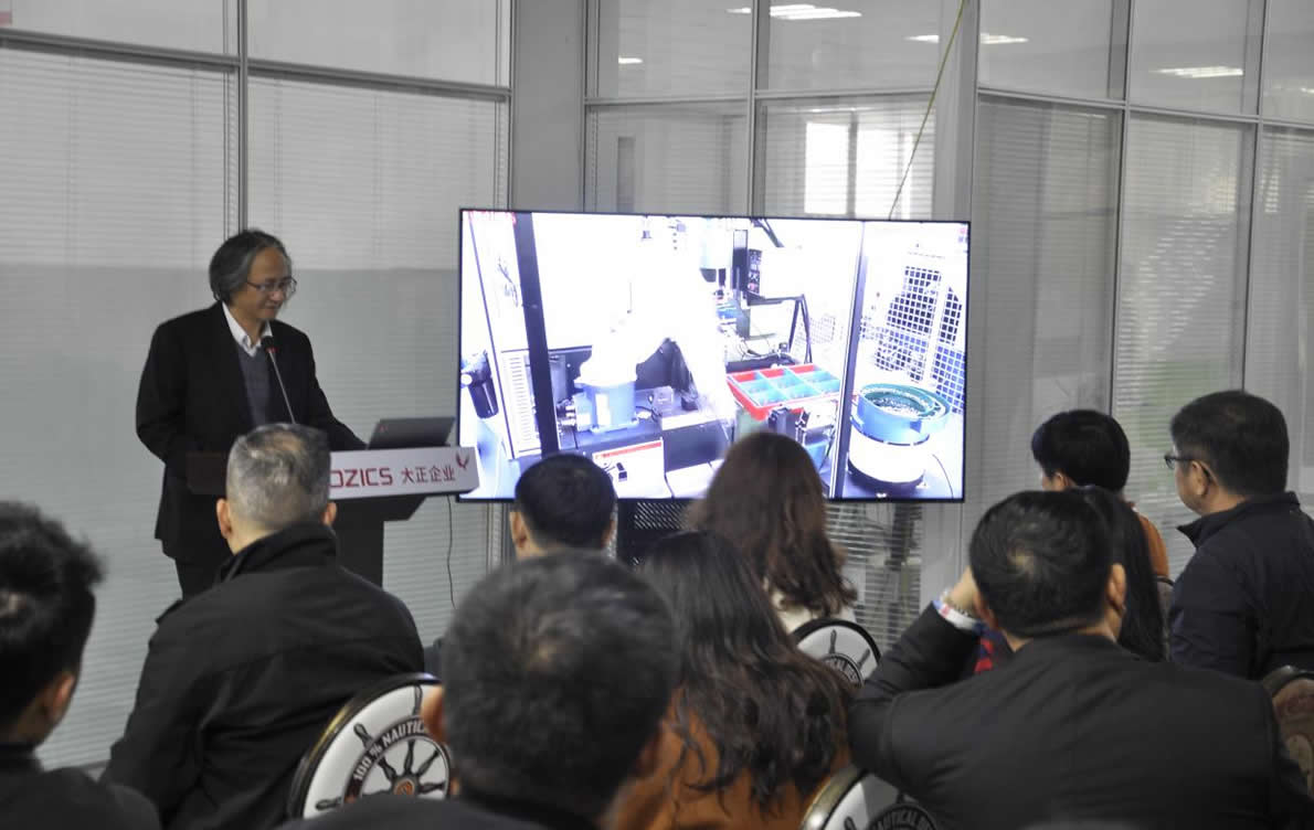 我司对考察团一行来访表达了诚挚的欢迎。会议上,公司总经理戴翔向来宾们分析了工业4.0的前景、宁波机器人现状等,帮助大家树立对机器人概念的正确认知。同时他简要介绍了公司的发展历程、生产规模和行业规划等概况,今年会大厦坐落于宁波北仑小港装备产业园,有着10多年的机器人集成经验,产品广泛应用于汽配、机加、上下料等领域,为企业提供机器人系统集成解决方案。代表们对我司的技术给予了高度的评价和肯定。